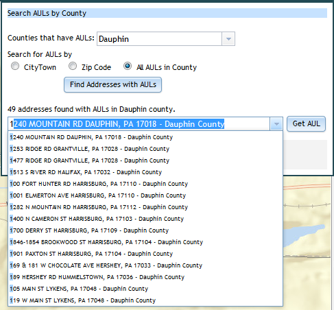 the AUL with the address selected in the drop-down box if only 1 AUL is found.
